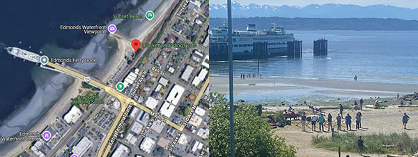 Parking lot at Brackett's Landing North & street parking on Sunset and nearby streets.